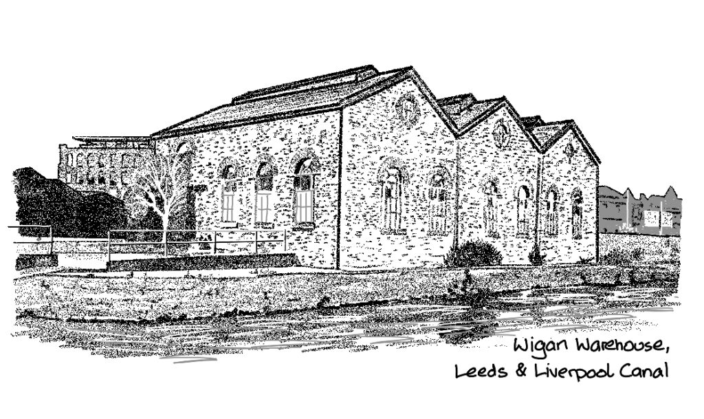 At Wigan Pier go under the bridge then loop round to the right over the top, and the canal turns sharply left.