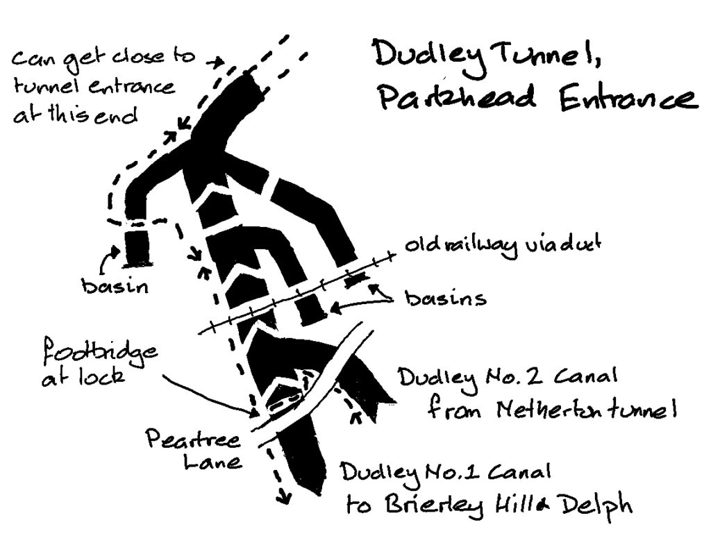 Turn left at the junction and cross the bridge at the lock. Double back and head up Park Head Locks to Dudley Tunnel. Unlike at the north end you can get right up to the entrance. Return down the locks to Park Head Junction. Crossing back over the footbridge, continue down the locks on Dudley No. 1 Canal.