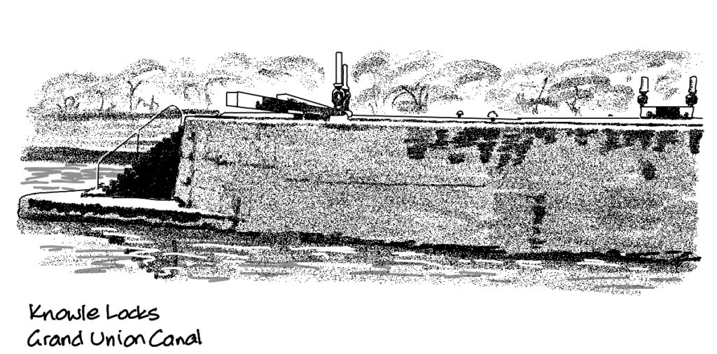 It then deteriorates, becoming stony and narrow, a bit slippery when set but cyclable all the way to Knowle Locks. These locks have an unusual design, being built out from the slope instead of set into it as is usual.