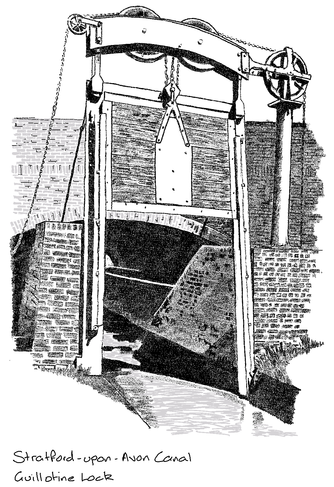 At the beginning of the Stratford Canal is the Guillotine Lock. This was built in order to preserve water between the two canals. As they were privately built and owned it was decided the few inches of difference in water levels between the two was worth maintaining, and so a lock was put in place, with the lock keeper under strict instructions not to let through any more water than was necessary to allow boats to pass.